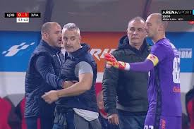 Posle razmenjenih reči sa trenerom Crvene zvezde, navijač je napustio teren i utakmica je nastavljena.