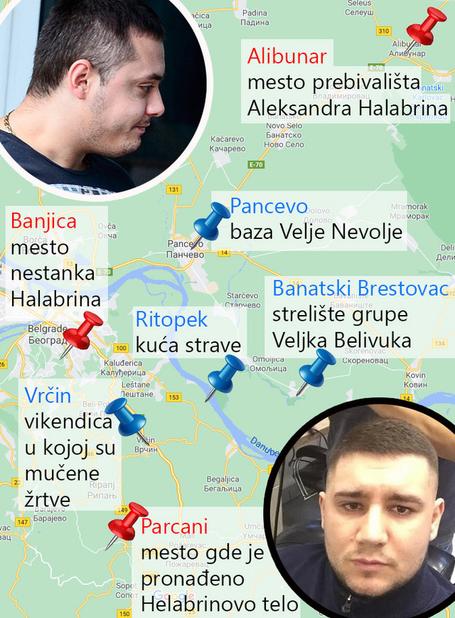 Slučaj ubijenog Halabrina ponovo se aktuelizovao hapšenjem Veljka Belivuka zvanog Velja Nevolja i pripadnika njegove grupe. Modus operandi Belivukove grupe, kada je reč o ubistvima, bio je da žrtvu namame na sastanak sa njoj poznatom osobom, a zatim bi je stavljali u automobil i odvozili u neku od vikendica na obodu grada, kojih je policija pronašla nekoliko. Jedna od njih nalazi se u neposrednoj blizini mesta na kom je pronađeno Halabrinovo telo…