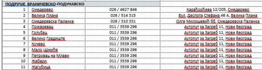 Za dodatne informacije, u zavisnosti od mesta stanovanja, možete da se obratite na sledeće brojeve telefona, svakog radnog dana u periodu od 8:00-15:oo časova.