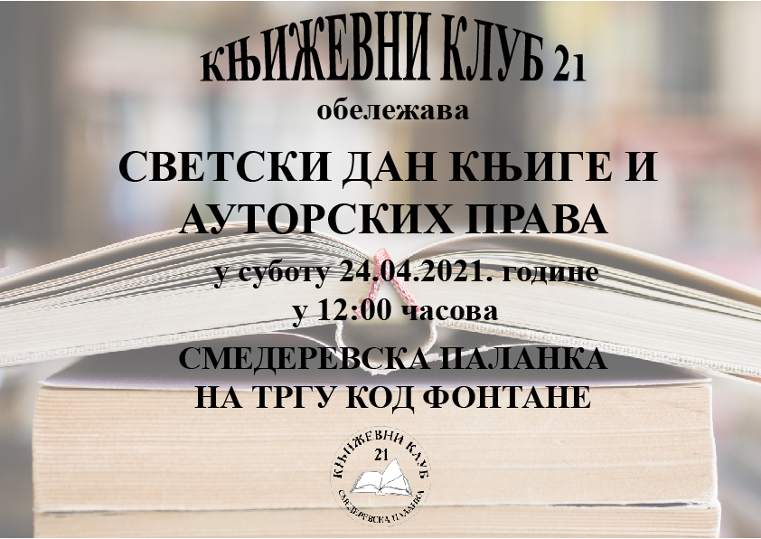 Književni klub „21“ iz S. Palanke u subotu, 24. aprila, obeležava Svetski dan knjige i autorskih prava.