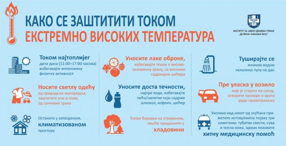 Institut za javno zdravlje Srbije „Dr Milan Jovanović Batut“ je izdao obaveštenje o načinima zaštite tokom ekstremno visokih temperatura:
