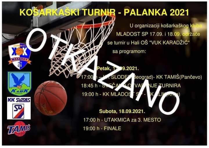 Najavljeni tradicionalni pripremni turnir u organizaciji KK „Mladost“ iz Palanke, pred početak regularne sezone, koji je trebao da se održi u petak i subotu, 17. i 18. septembra, otkazan je zbog nepovoljne epidemijske situacije i bolesti igrača.