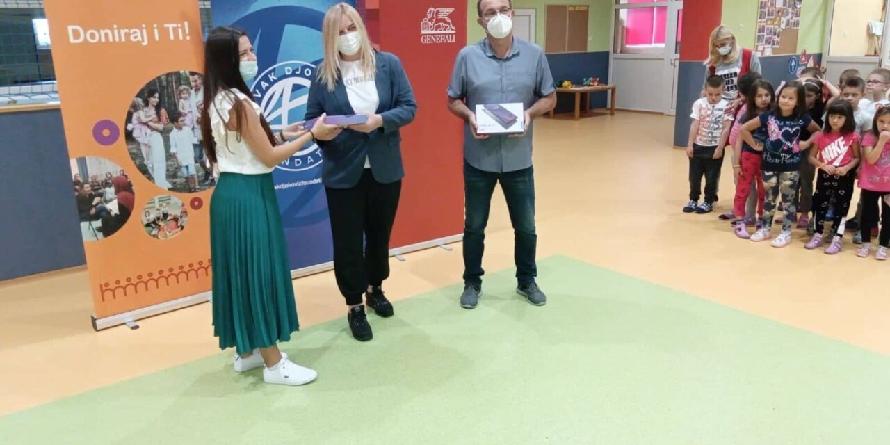 Predstavnici Fondacije „Novak Đoković“ juče su posetili PU „Radost“ u Čajetini i poklonili pripremnim predškolskim grupama tablet računare.