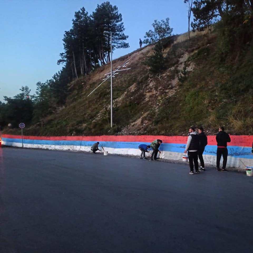 Ispred manastira Đurđevi Stupovi podignut je plakat sa likom prvog srpskog arhiepiskopa Svetog Save.