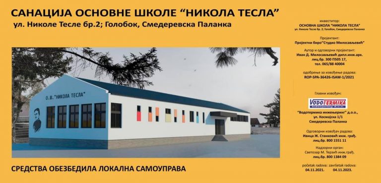 Nakon što je u toku leta srušena stara zgrada osnovne škole „Nikola Tesla“ u Goloboku, radovi koji podrazumevaju izgradnju potpuno novog objekta su počeli. To je, obraćajući se javnosti putem svoj profila na društvenoj mreži Fejsbuk, potvrdio predsednik palanačke opštine Nikola Vučen.