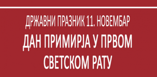 Prema Zakonu o državnim i drugim praznicima u Republici Srbiji državni praznik Dan primirja u Prvom svetskom ratu praznuje se neradno 11. novembra, što ove godine pada u četvrtak.