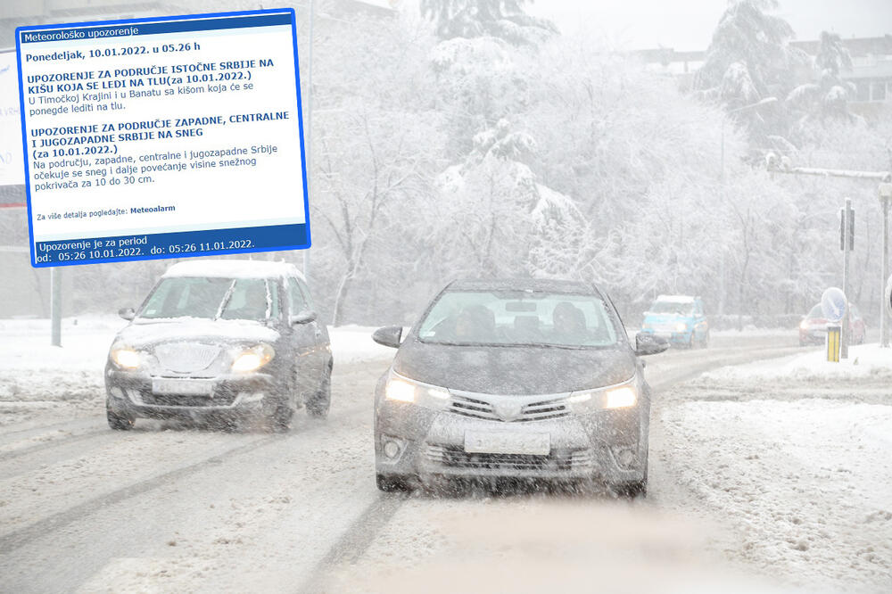 U većem delu Srbije na snazi je narandžasti meteo alarm zbog snega i leda. Inače, narandžasti meteo alarm označava opasno vreme.