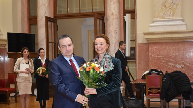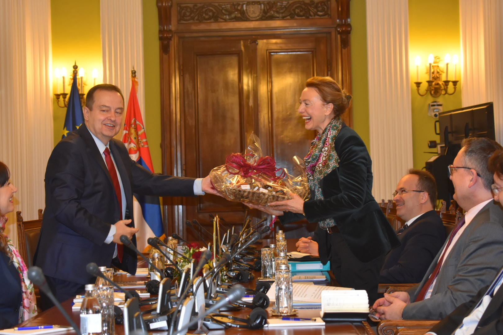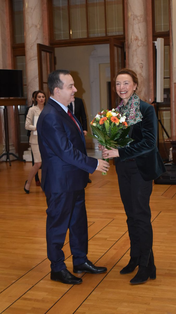 Tom prilikom, povodom Međunarodnog dana žena Dačić joj je poklonio buket ruža i korpu tradicionalnih proizvoda iz Srbije.