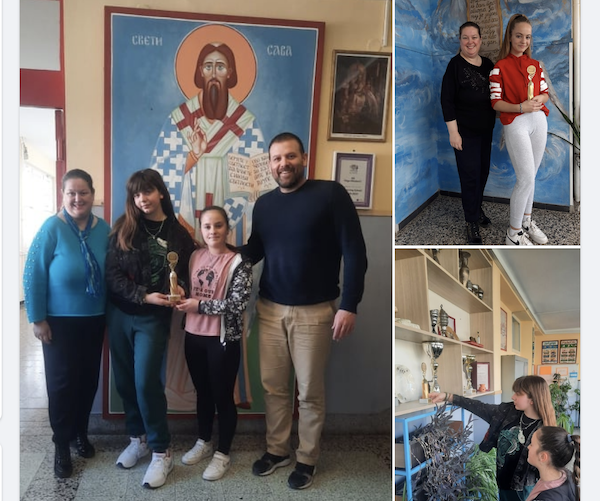 Treće mesto za pesmu ostvarila je učenica Sandra Kristaj (VII 2). Za mentorski rad sa učenicima specijalnu diplomu dobila je profesorka Snežana Čairović. Članovi Literarne sekcije „Nasmejani anđeli“, osvojili su pesničku statuu „Sunce stihova“, koju predstavljaju najbolje članice sekcije Lidija Aranđelović (VIII 2), kao i Helena Đorđević (VIII 2).