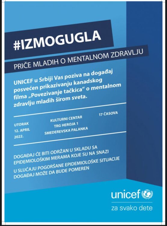 UNICEF i Prijatelji dece Srbije pozivaju srednjoškolce, roditelje, zaposlene u obrazovanju, zdravstvu, kao i nevladine organizacije, da prisustvuju prikazivanju dokumentarnog filma „Povezivanje tačkica“ o mentalnom zdravlju mladih i da se uključe u globalnu diskusiju o ovoj značajnoj društvenoj temi.