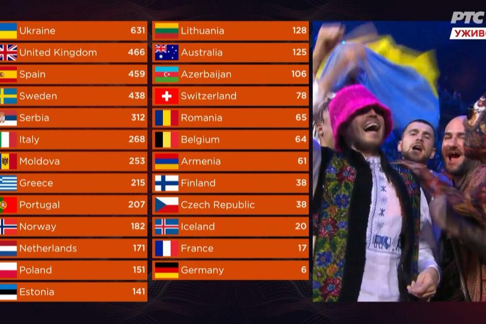00.06 – Ukrajina je 12 poena dala Velikoj Britaniji.