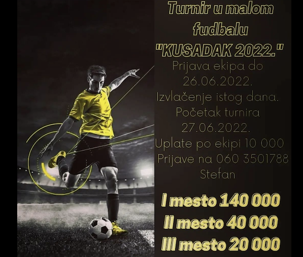 Tradicionalni turnir u malom fudbalu ”Kusadak 2022” počeće 27. juna. Prijava ekipa je do 26. juna kada će se obaviti i žreb za parove.
