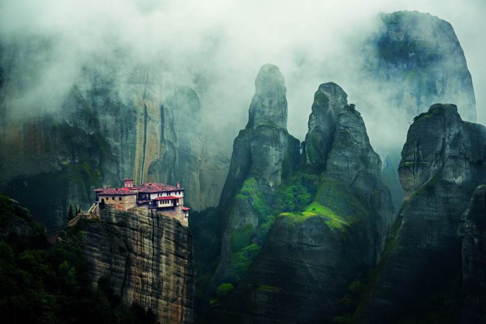 Manastiri Meteori u Grčkoj predstavljaju čudo inženjerske tehnike. Smešteni na vrhove stena od peščara, s monaškim kelijama skrivenim u pukotinama, ova grčka pravoslavna svetilišta odražavaju kontemplativnu osamljenost monaha koji su ih izgradili u periodu između XIV i XVII veka. U najintimnijem od njih, Manastiru Ruslanu, sada boravi 16 monahinja (*podatak iz 2020. godine). U ovom manastiru čuvaju se mošti Svete Varvare, jedne od najomiljenijih svetica tokom srednjeg veka.
