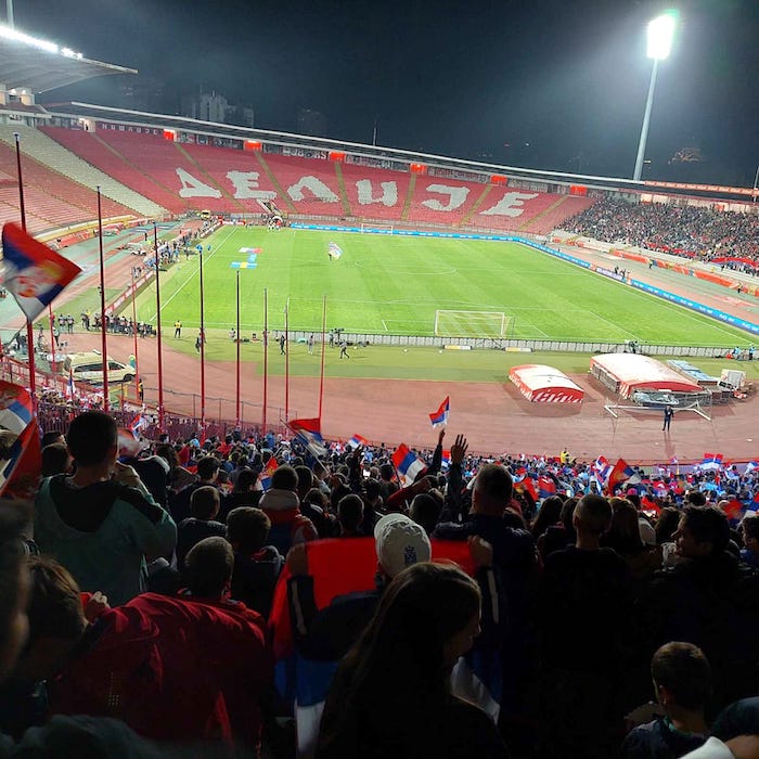 Atmosfera je bila odlična iako su na tribinama bili navijači mlađi od 14 godina, podršku na stadionu ”Rajko Mitić” Srbiji su pružili i učenici, nastavnici i direktor OŠ „Heroj Radmila Šišković“.